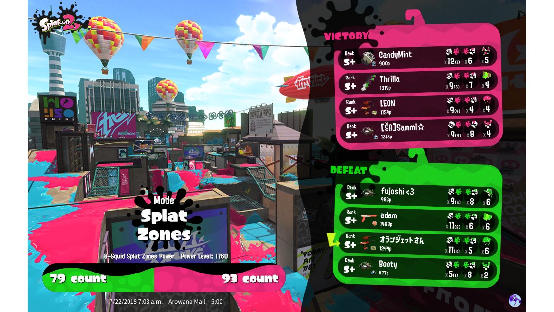 | Mode | Splat Zones - Ranked Battle | ||||||||||||||||||||||||||||