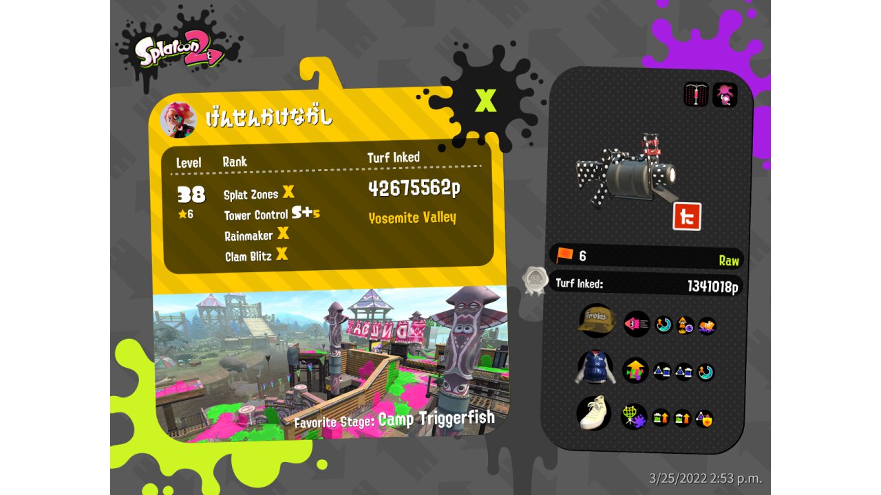 | SplatNet Battle # | 44,365 | ||||||||||||||||||||||||||||||||||||||||||||||