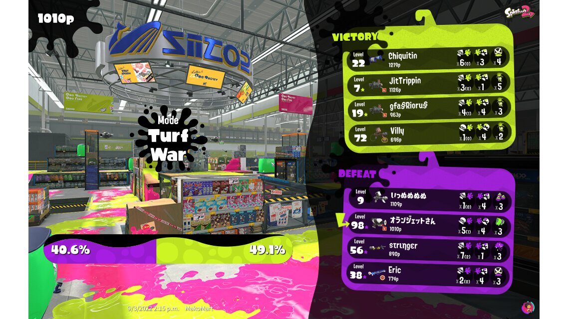| Mode | Turf War - Regular Battle | |||||||||||||||||||||||||||||||