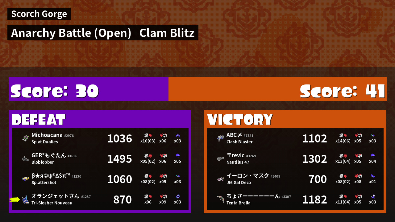 | Mode | Clam Blitz - Anarchy Battle (Open) | ||