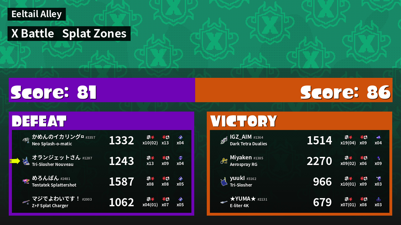 Kills / Deaths | 13 + 0 / 9 > Kill Ratio: 1.44 | ||
