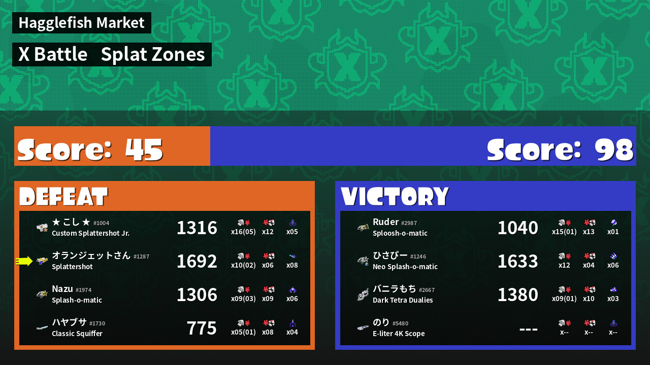 | Mode | Splat Zones - X Battle | ||