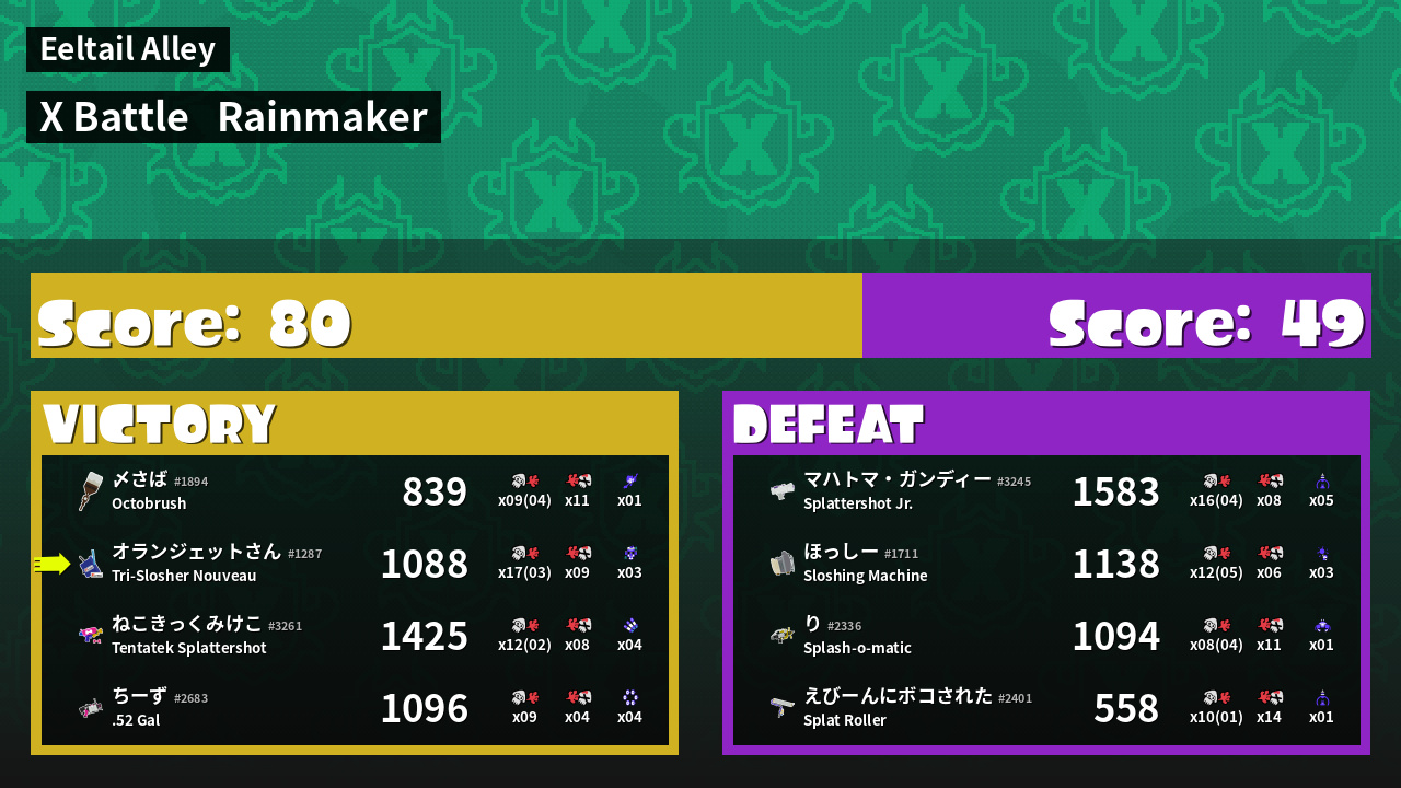 | Medals | #1 Overall Splatter #1 Enemy Splatter #1 Rainmaker Stopper | ||