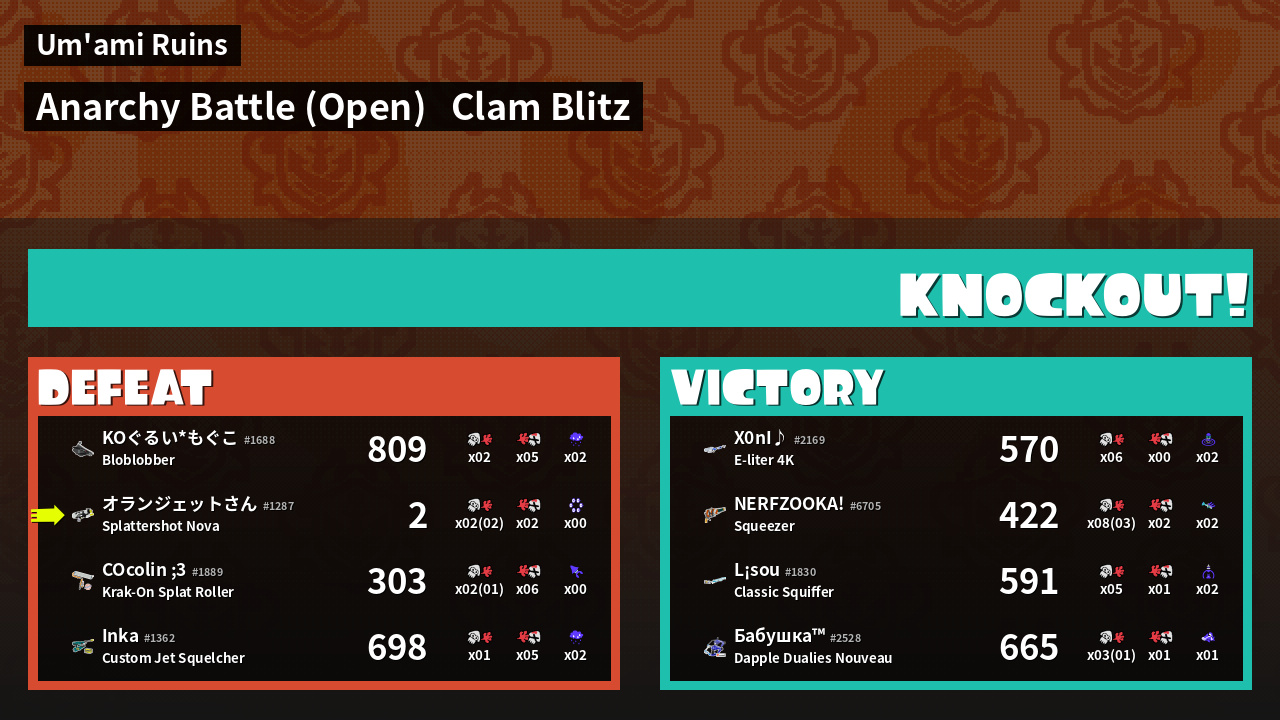 | Mode | Clam Blitz - Anarchy Battle (Open) | ||
