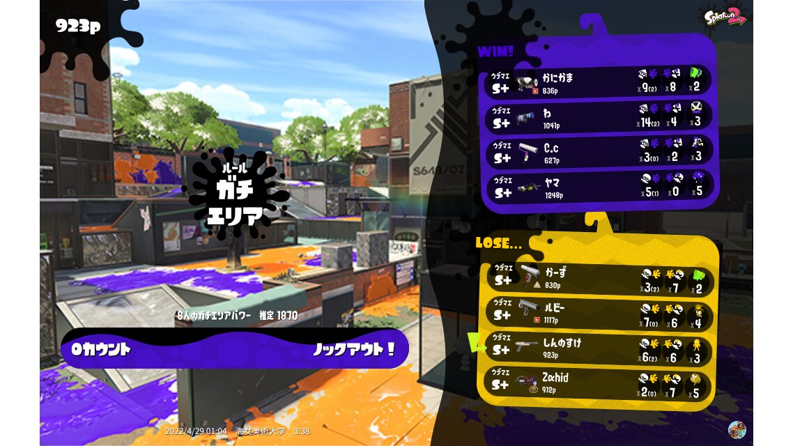 | Mode | Splat Zones - Ranked Battle | ||||||||||||||||||||||||||||||||||||||||||||||