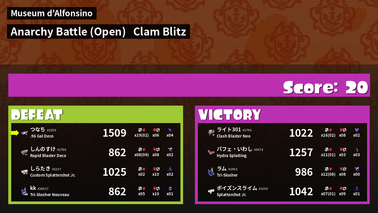 | Mode | Clam Blitz - Anarchy Battle (Open) | ||