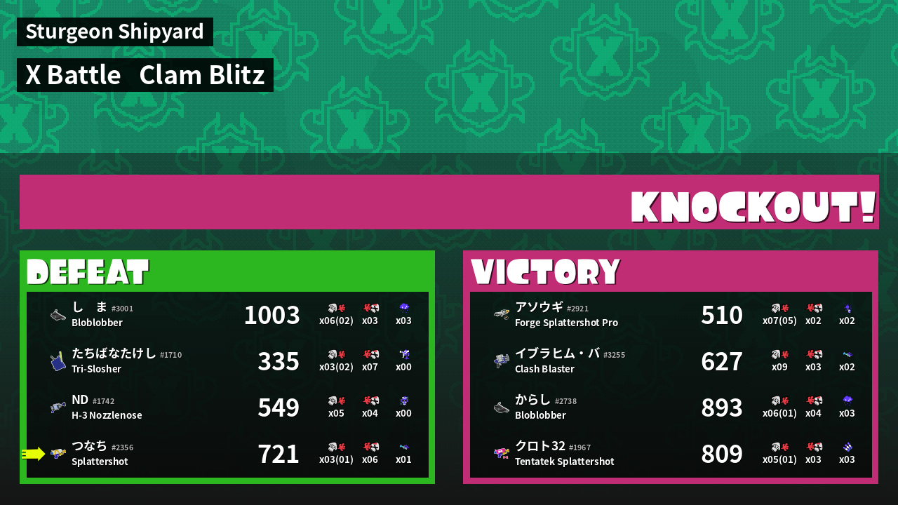 | Mode | Clam Blitz - X Battle | ||