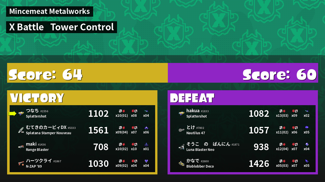 | Mode | Tower Control - X Battle | ||