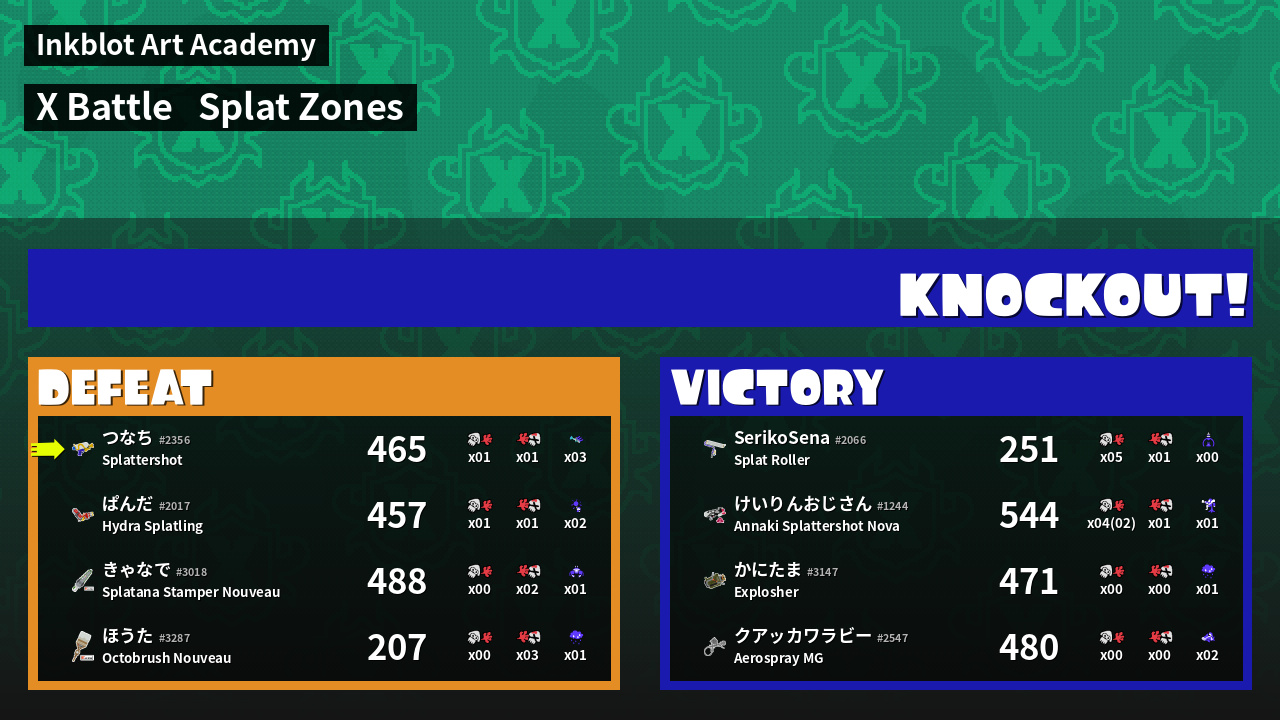 | Mode | Splat Zones - X Battle | ||