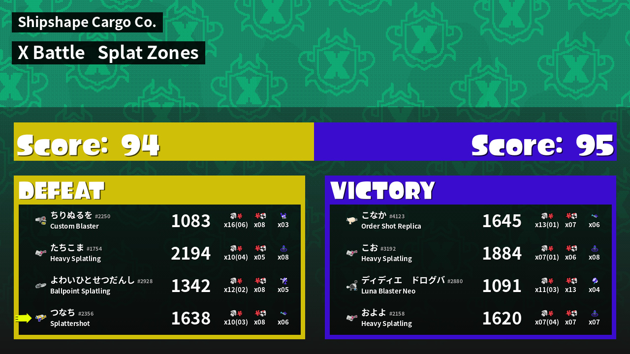 | Mode | Splat Zones - X Battle | ||