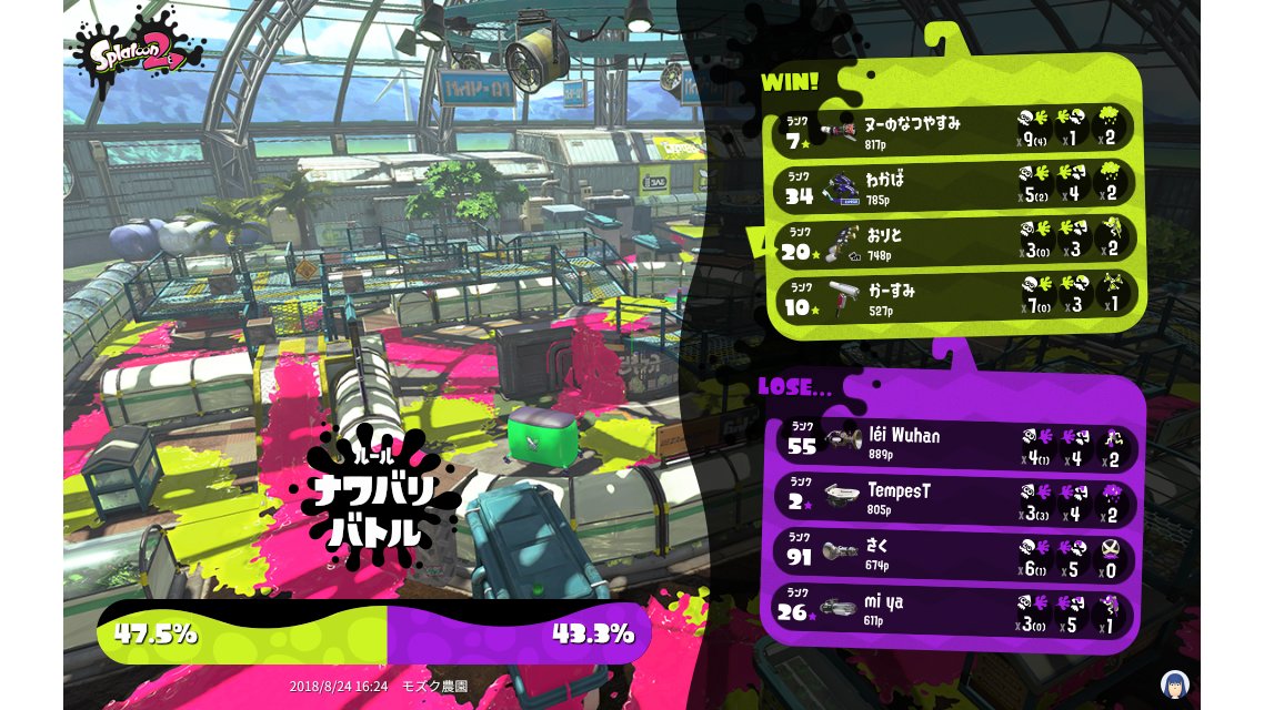 | Mode | Turf War - Regular Battle | ||||||||||||||||||||||||||||||||||||||||