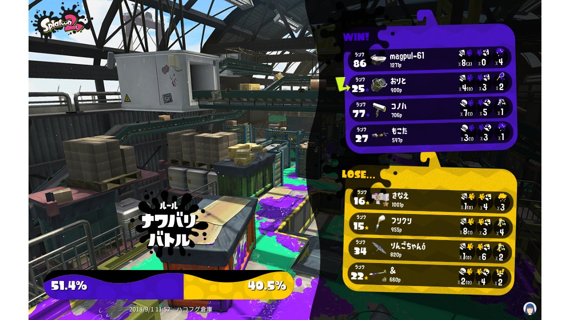 | Mode | Turf War - Regular Battle | |||||||||||||||||||||||||||||||||||||||||||