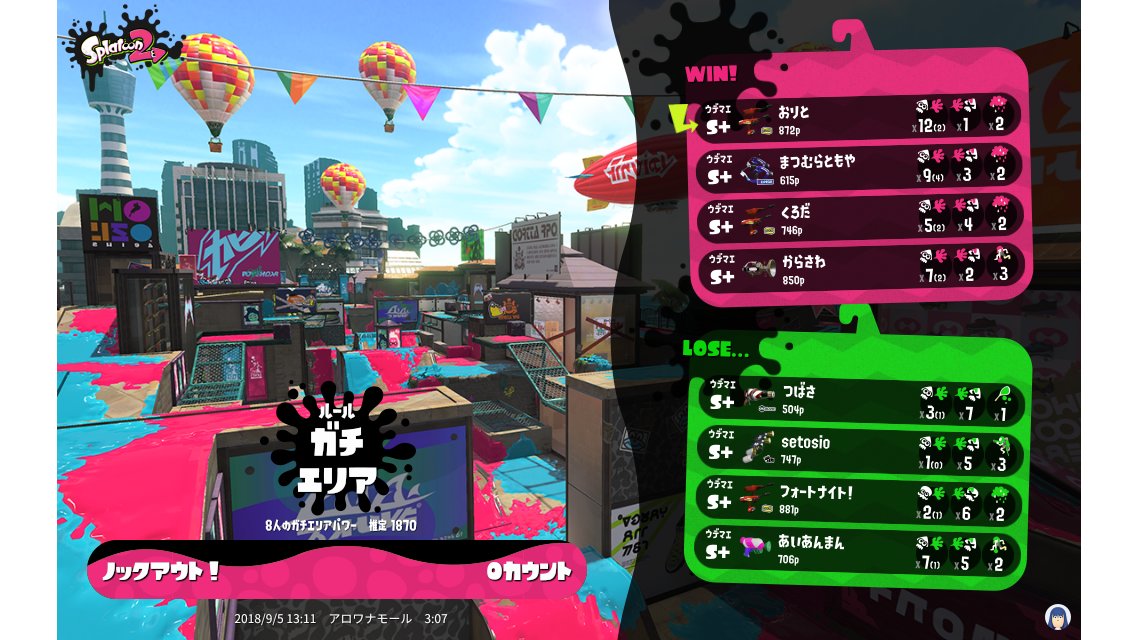 | Mode | Splat Zones - Ranked Battle | |||||||||||||||||||||||||||||||||||||