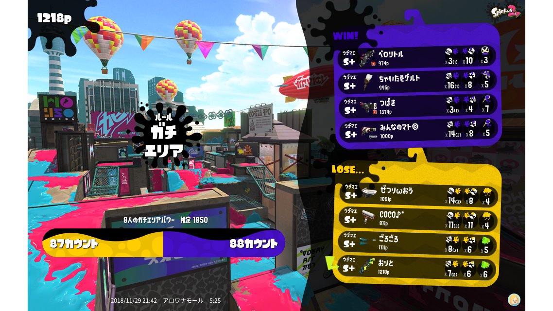 | Mode | Splat Zones - Ranked Battle | ||||||||||||||||||||||||||||||||||