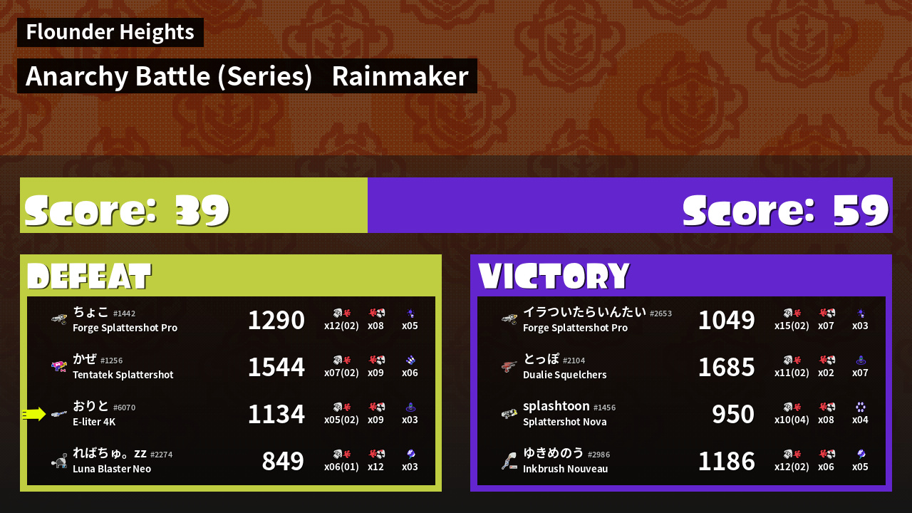 Results of おりと's Battle