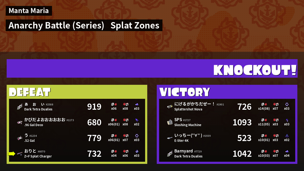 | Mode | Splat Zones - Anarchy Battle (Series) | ||