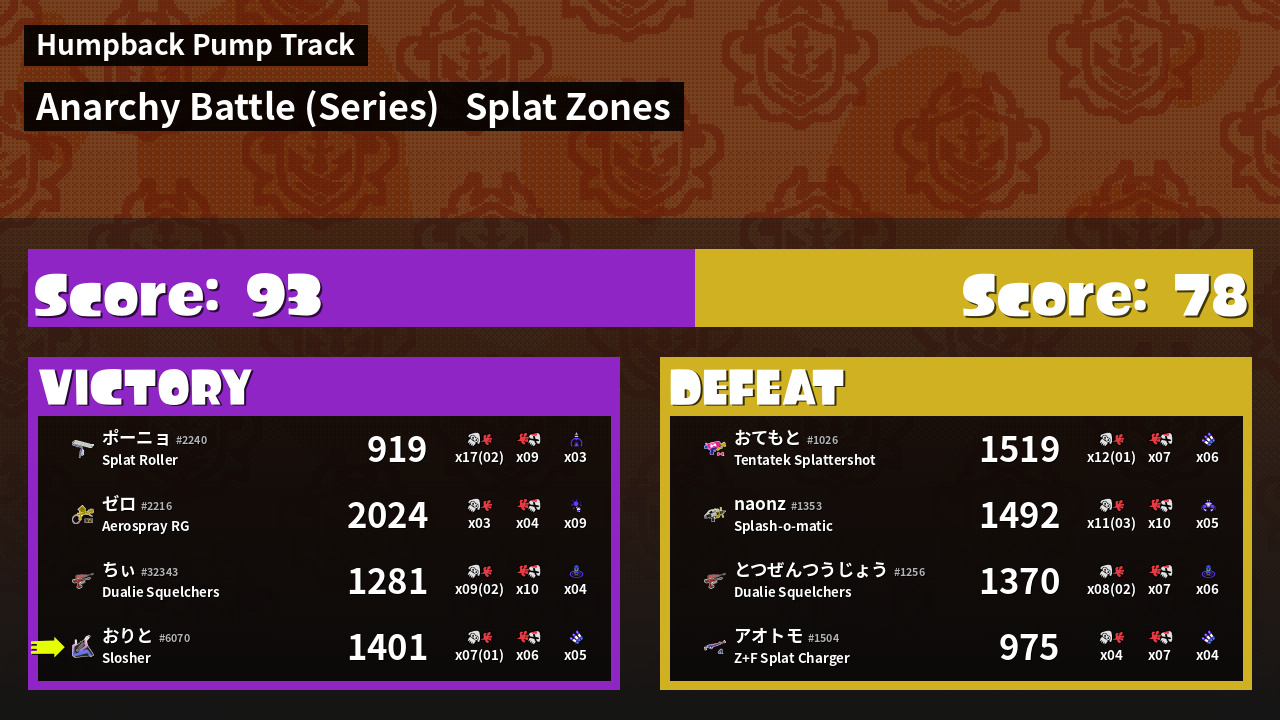 | Mode | Splat Zones - Anarchy Battle (Series) | ||