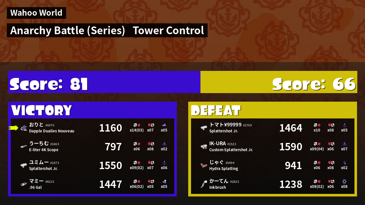 | Mode | Tower Control - Anarchy Battle (Series) | ||