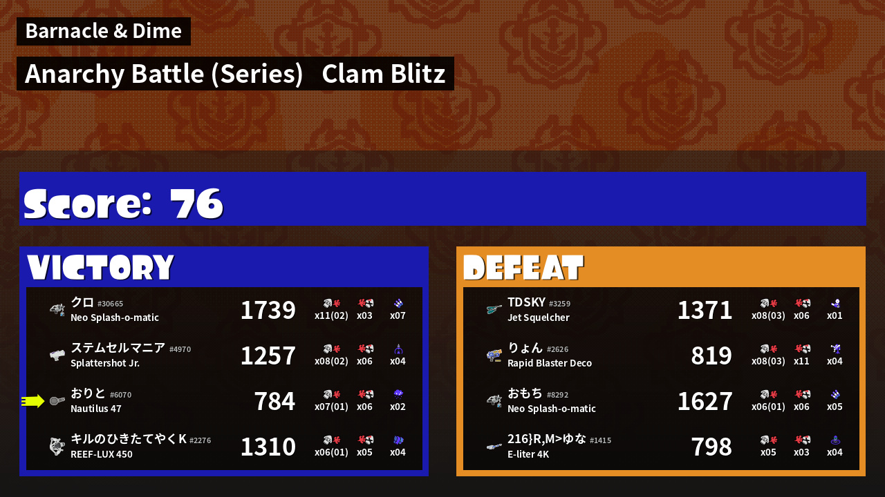 Results of おりと's Battle