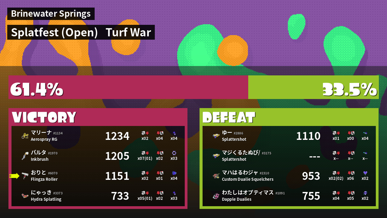 Results of おりと's Battle