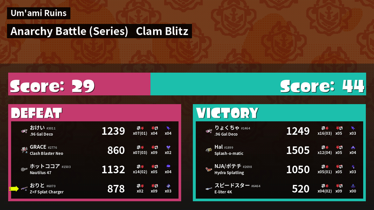 Results of おりと's Battle