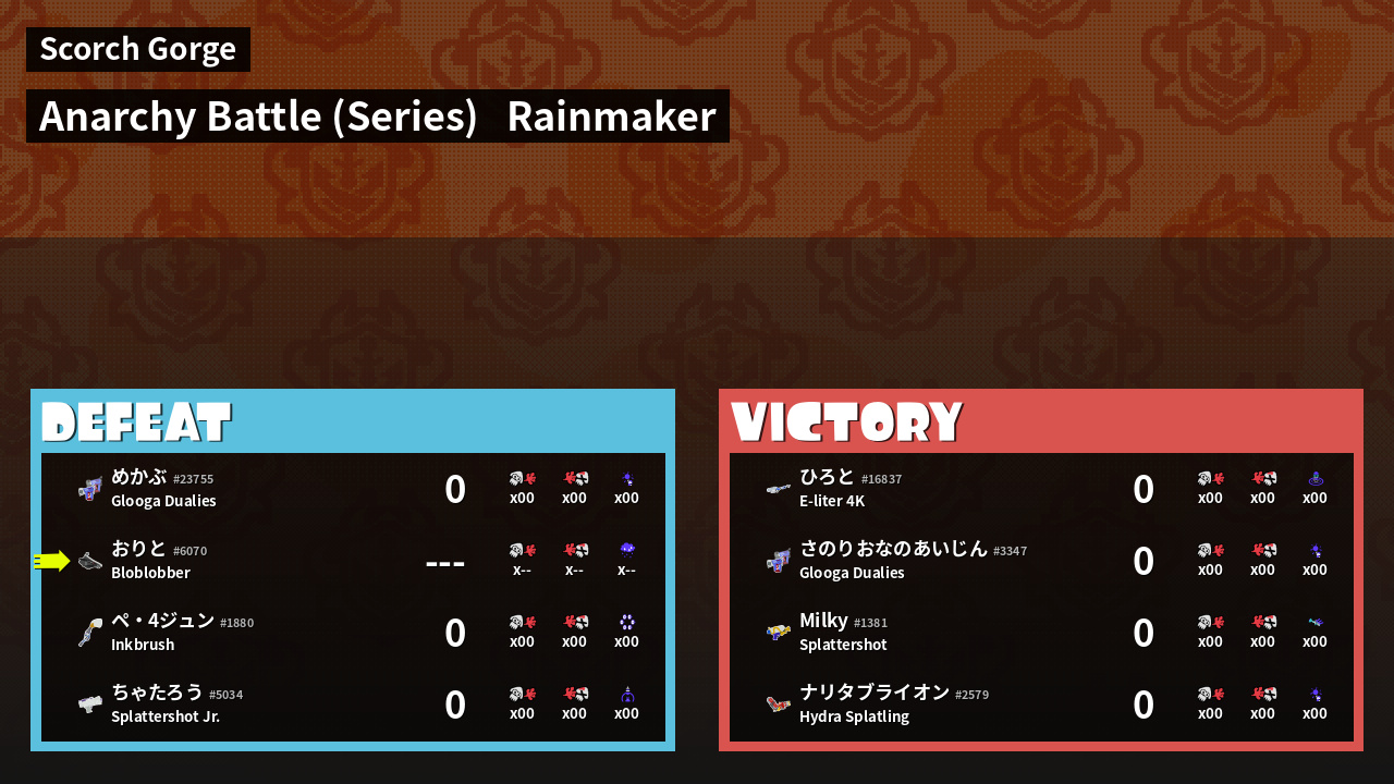 | Mode | Rainmaker - Anarchy Battle (Series) | ||