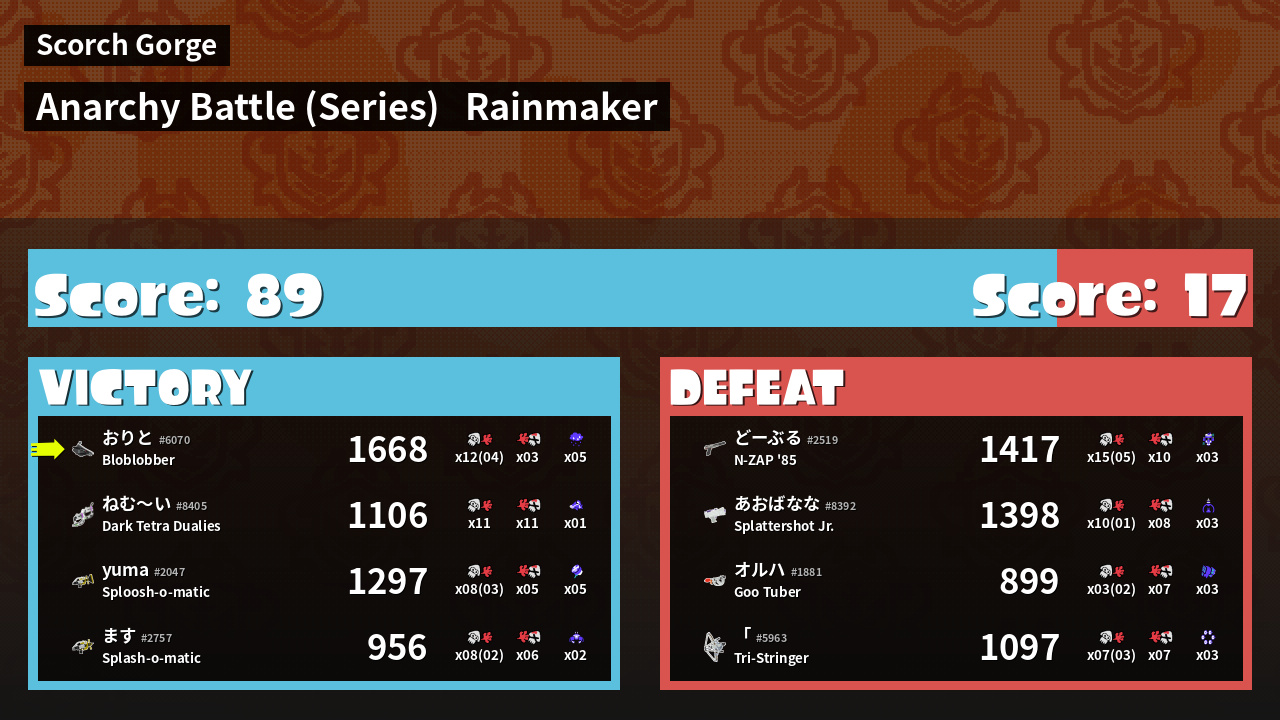 | Mode | Rainmaker - Anarchy Battle (Series) | ||