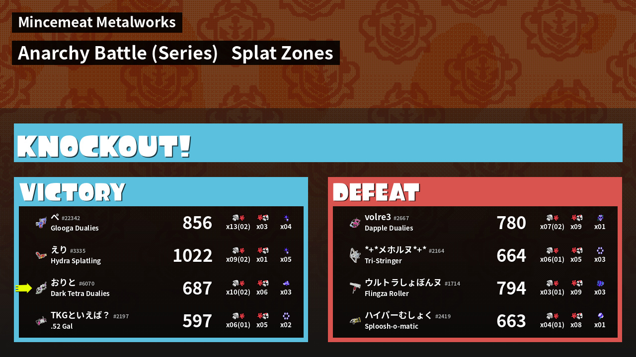 Results of おりと's Battle