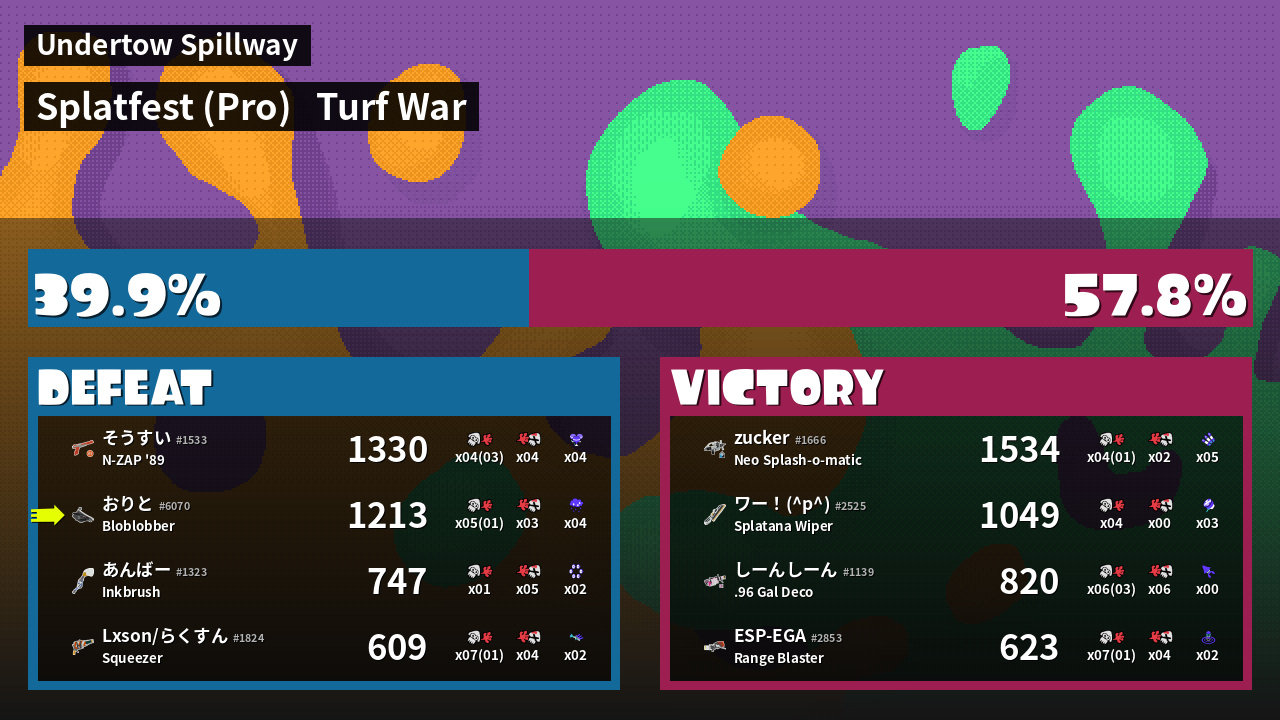 | Mode | Turf War - Splatfest (Pro) | ||