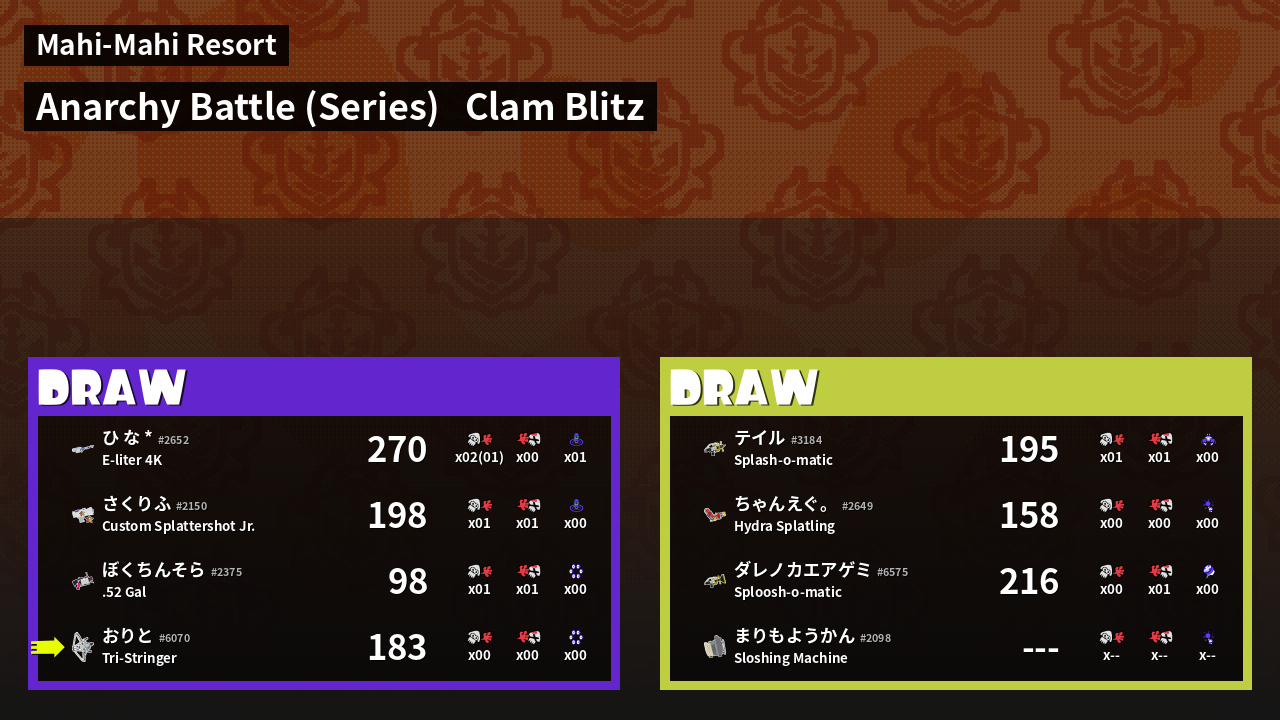 | Mode | Clam Blitz - Anarchy Battle (Series) | ||