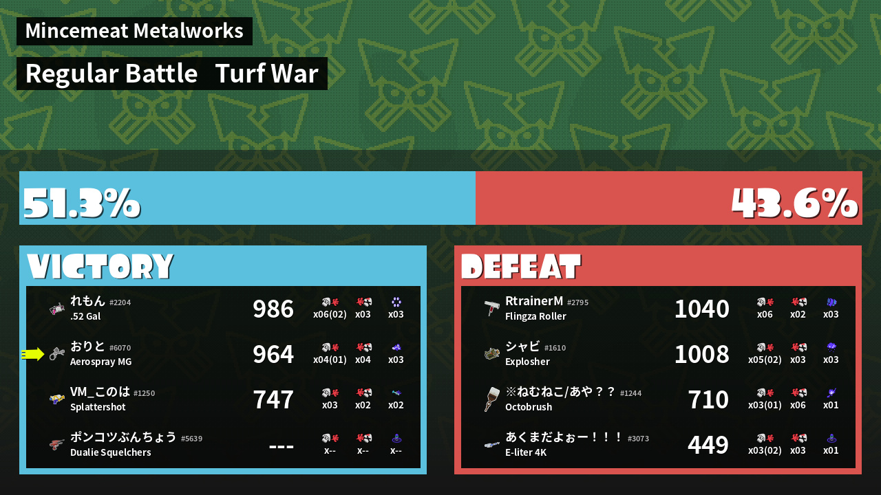 Results of おりと's Battle