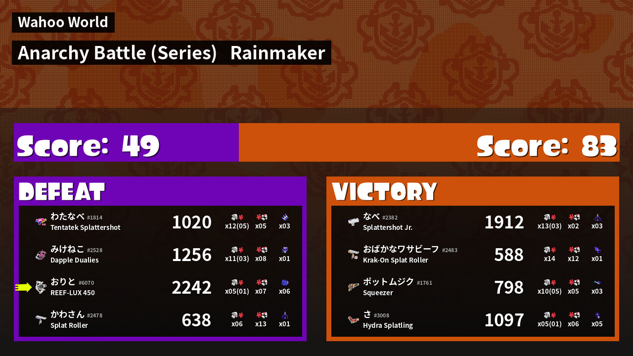 Results of おりと's Battle