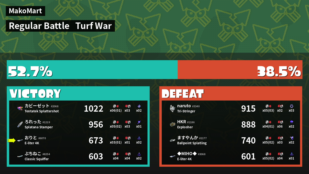 Results of おりと's Battle