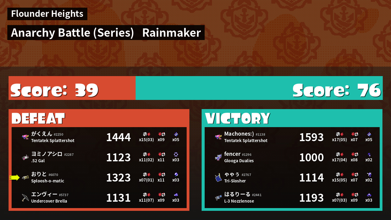 Results of おりと's Battle