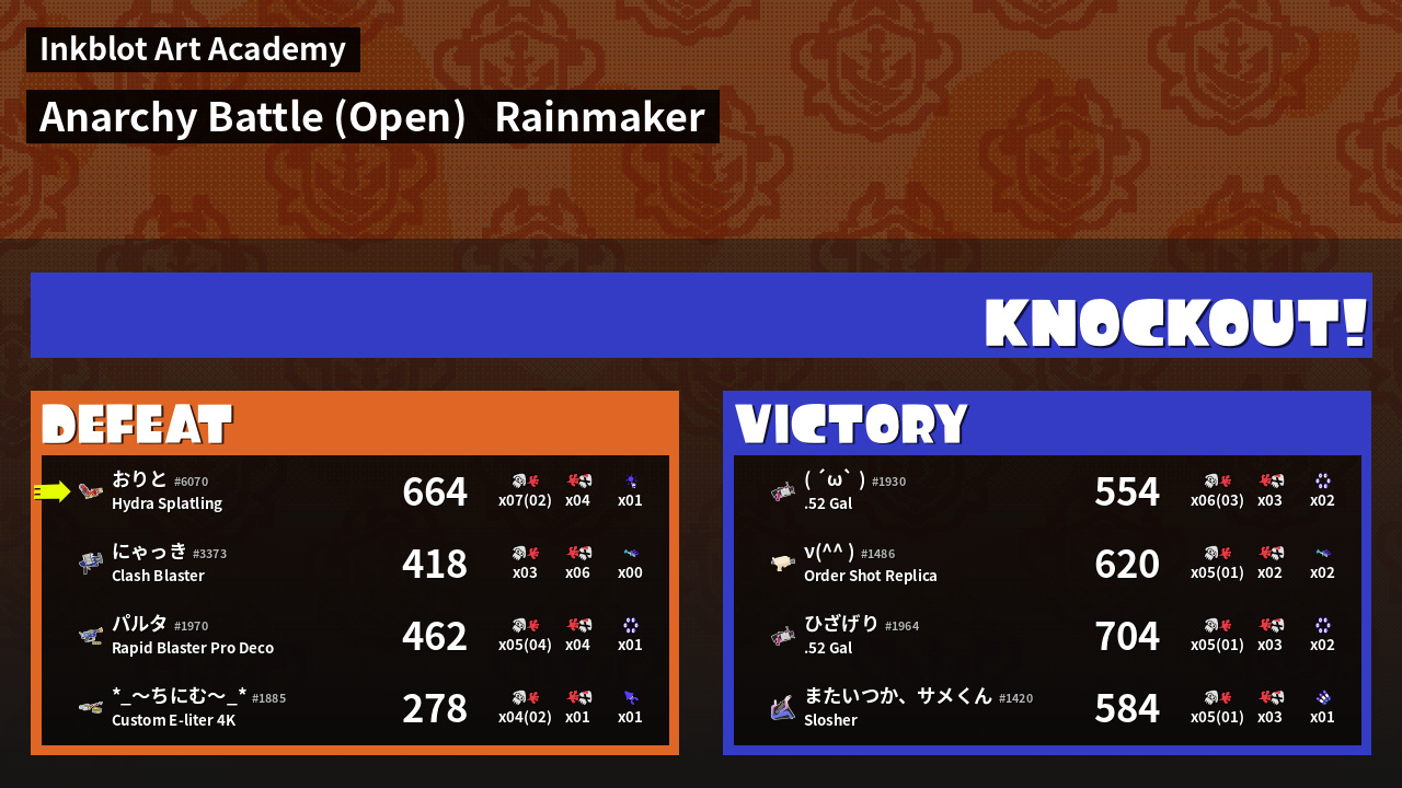 Results of おりと's Battle