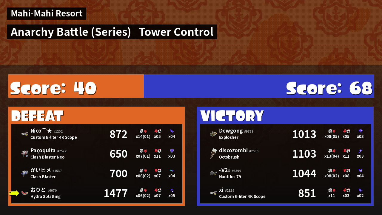 Results of おりと's Battle