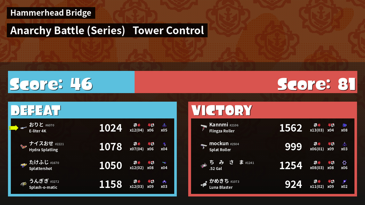 | Medals | #1 Overall Splatter #1 Popular Target #1 Super Jump Spot | ||