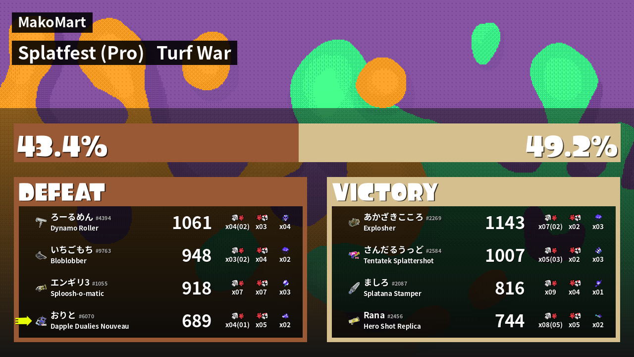 | Mode | Turf War - Splatfest (Pro) | ||
