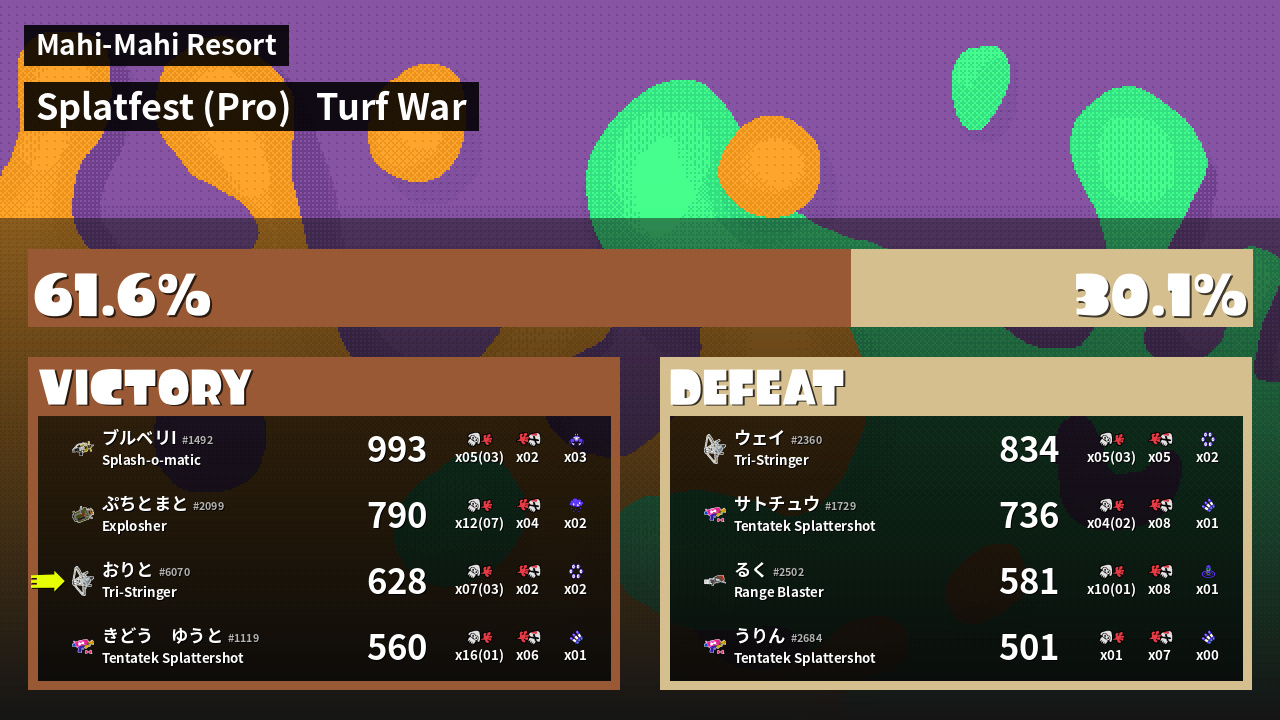 | Mode | Turf War - Splatfest (Pro) | ||