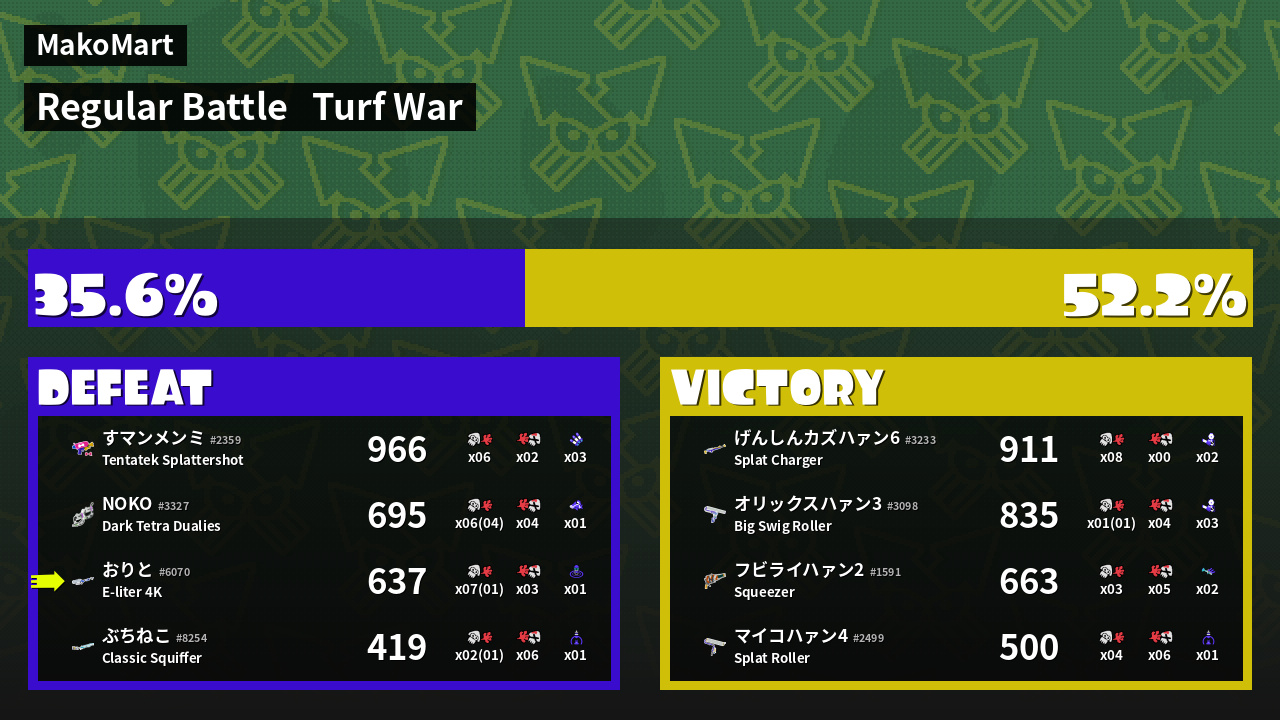 Results of おりと's Battle