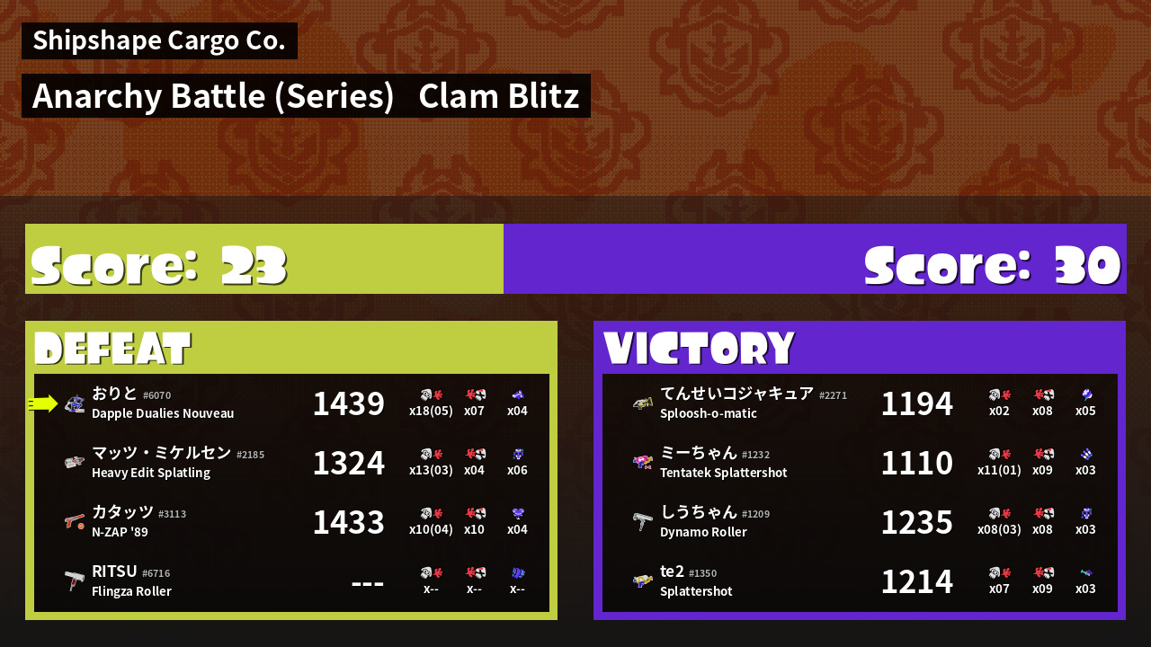 | Mode |    Clam Blitz -   Anarchy Battle (Series) | ||