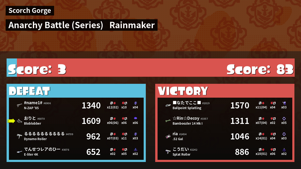| Mode | Rainmaker - Anarchy Battle (Series) | ||
