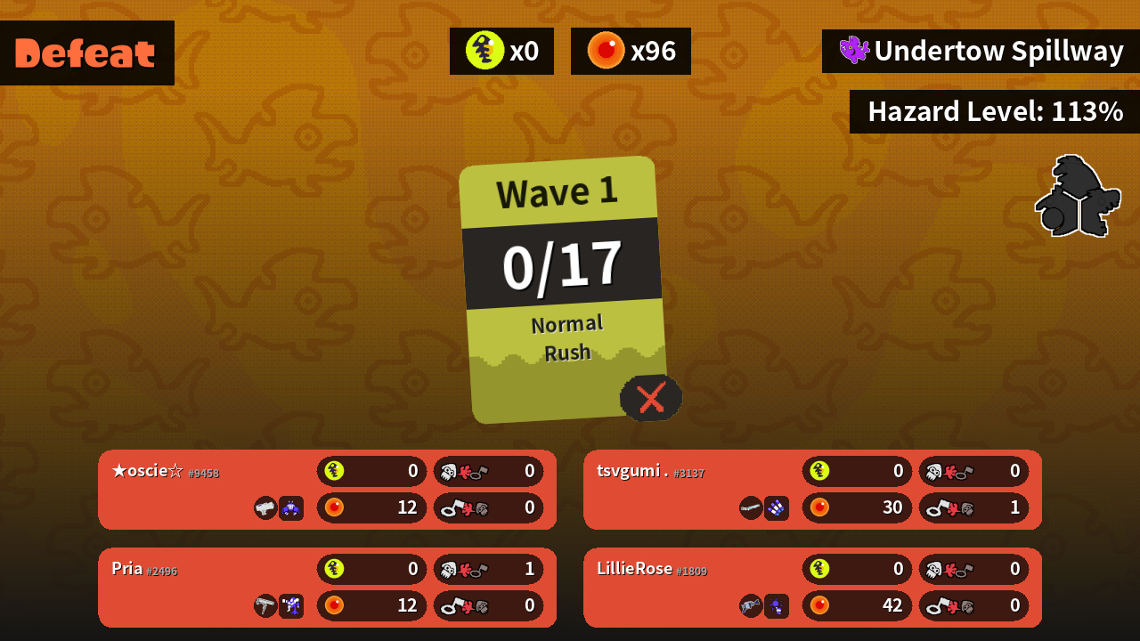 | Special | Crab Tank (0) | Booyah Bomb (0) | Triple Inkstrike (0) | Inkjet (0) |