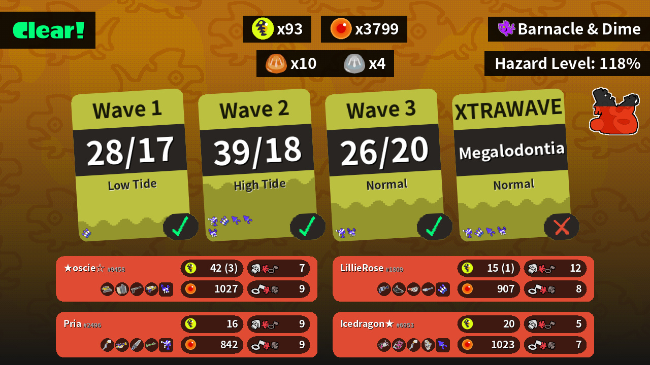 | Weapons | Dread Wringer Sloshing Machine N-ZAP '85 Splattershot | .52 Gal Dapple Dualies Inkbrush Grizzco Stringer | Inkbrush Mini Splatling Splatana Stamper Bamboozler 14 Mk I | H-3 Nozzlenose Bloblobber Goo Tuber E-liter 4K |