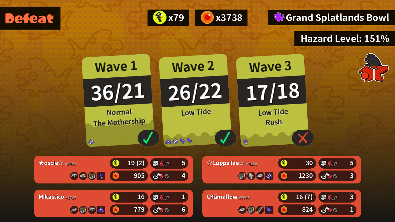 | Weapons | Grizzco Roller Grizzco Blaster Grizzco Slosher | Grizzco Slosher Grizzco Stringer Grizzco Brella | Grizzco Brella Grizzco Slosher Grizzco Splatana | Grizzco Charger Grizzco Slosher Grizzco Roller |