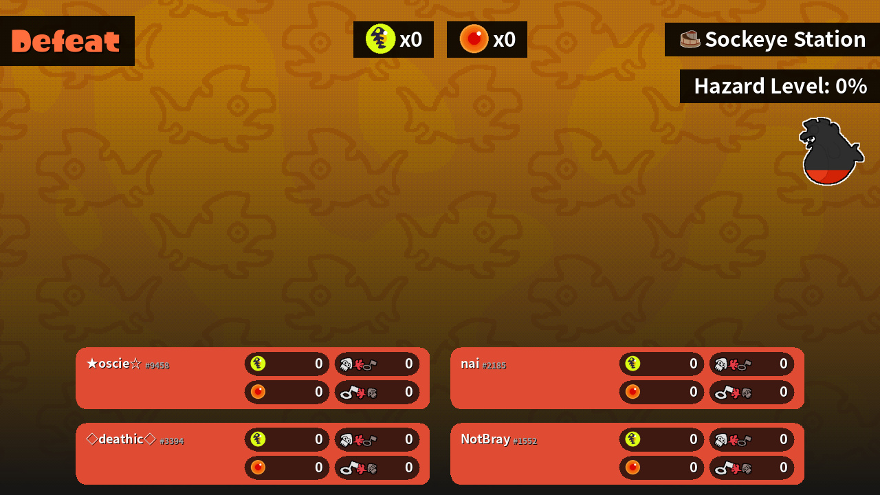 | Boss Salmonid | 0 | 0 | 0 | 0 |
