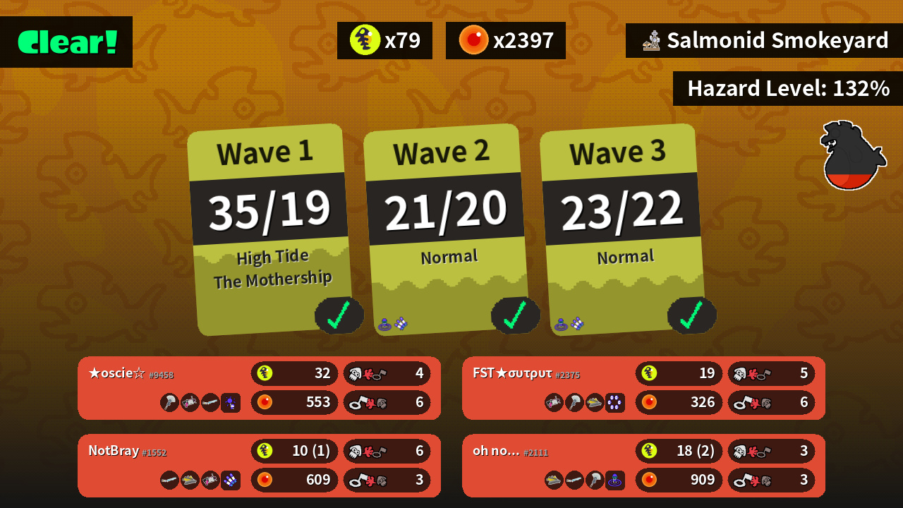 | Special | Booyah Bomb (0) | Killer Wail 5.1 (0) | Wave Breaker (2) | Triple Inkstrike (2) |