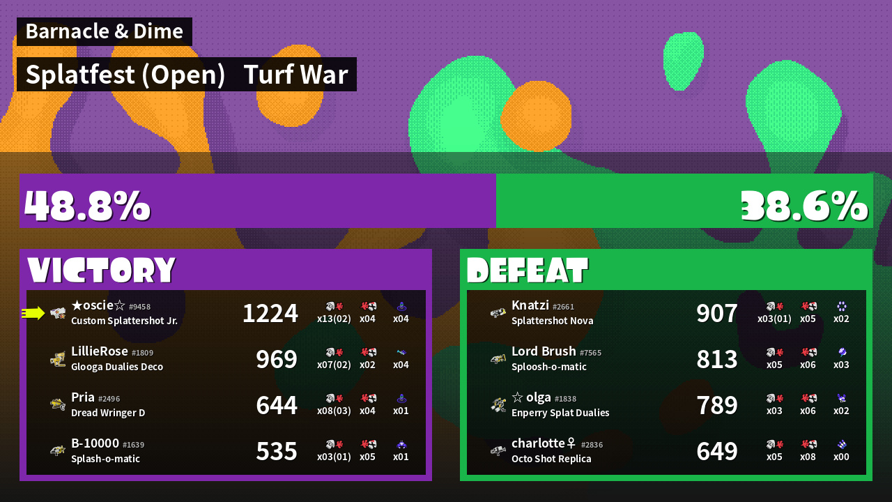| Medals | #1 Overall Splatter #1 Turf Inker #1 Home-Base Inker | ||