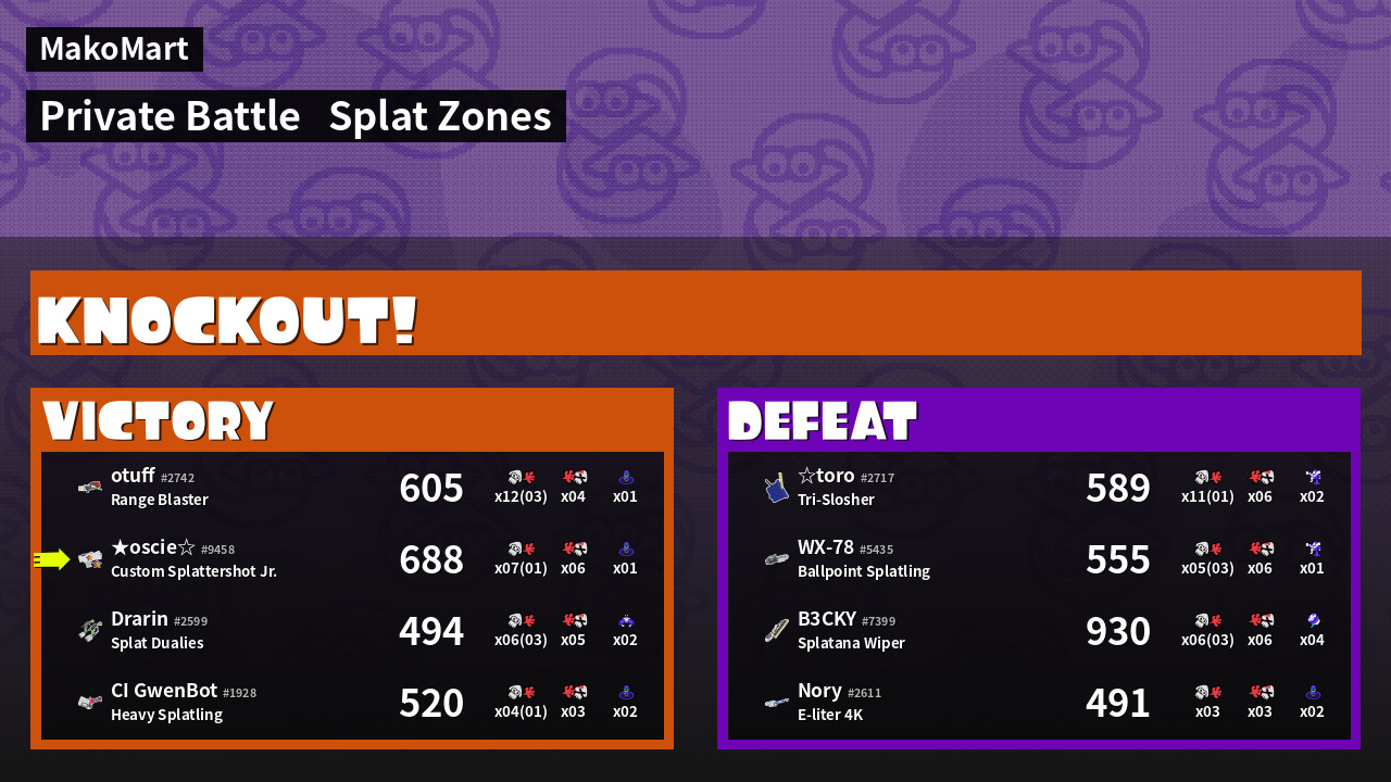 | Mode | Splat Zones - Private Battle | ||