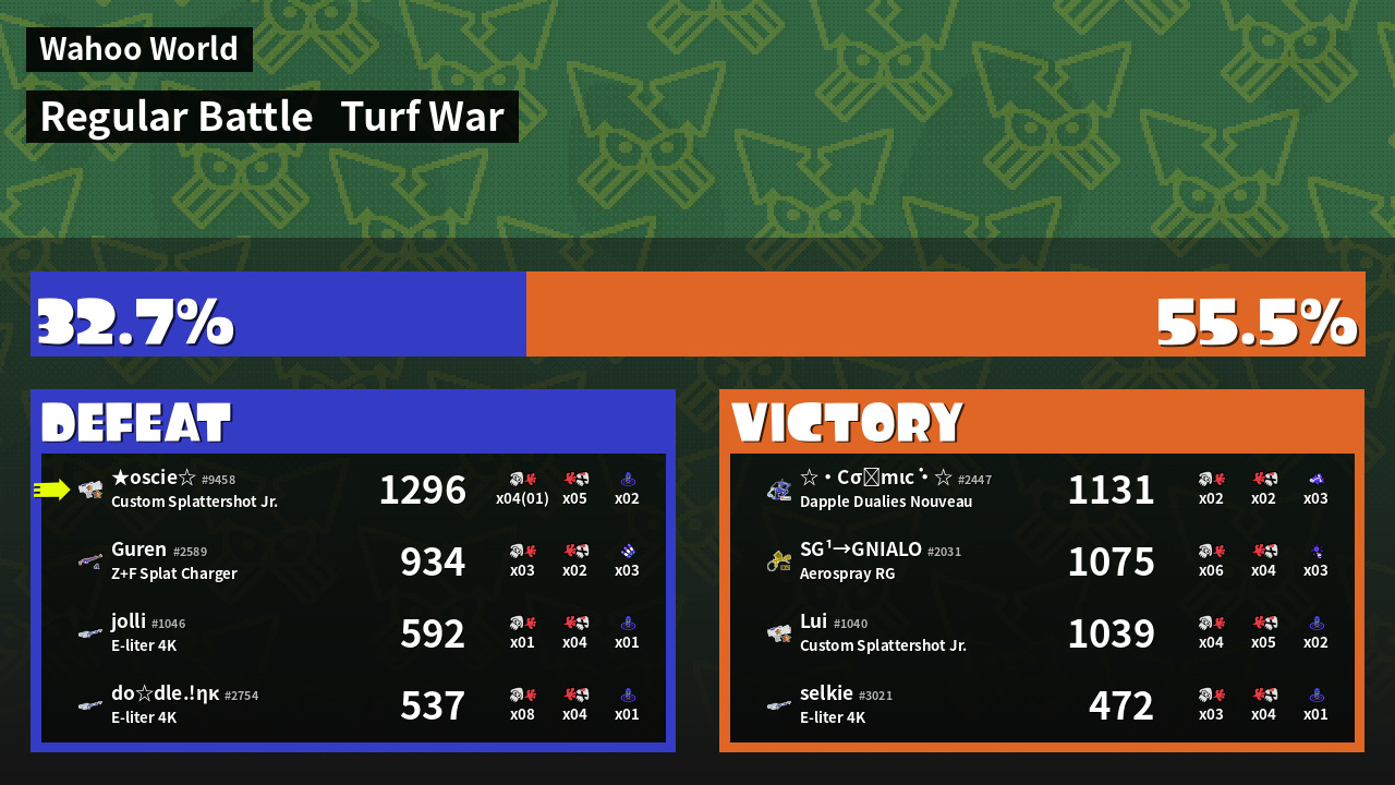 | Mode | Turf War - Regular Battle | ||